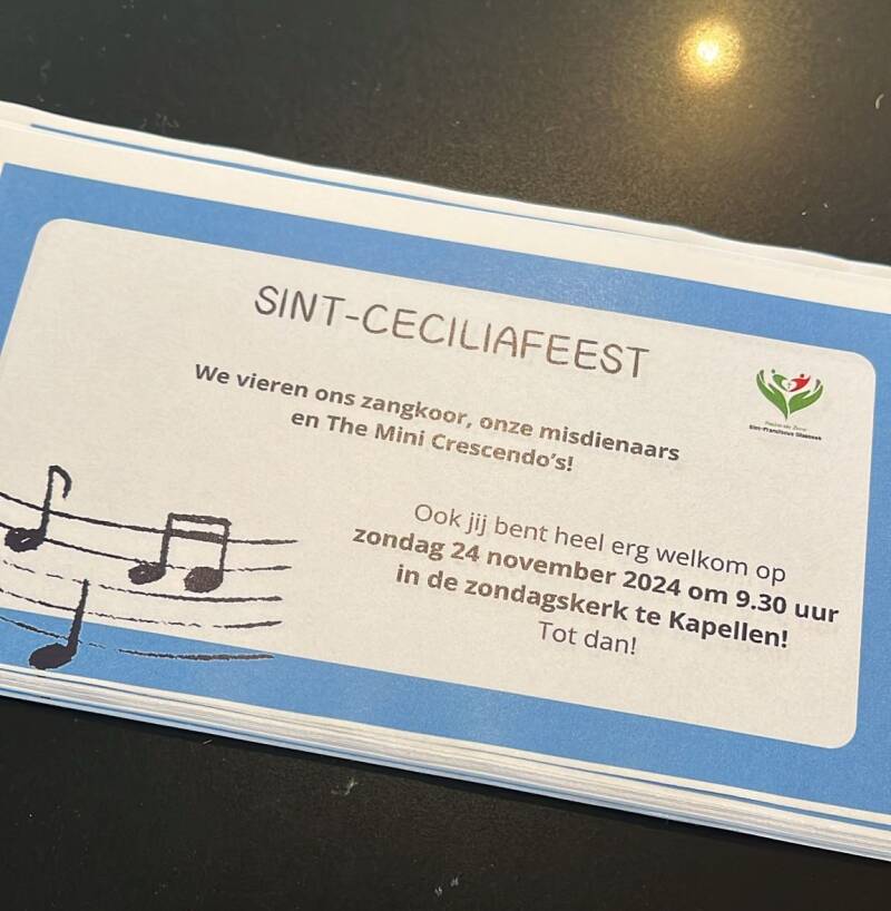 Wij nodigen iedereen uit om op 24 november, samen met het zangkoor en The Mini's, het naamfeest van onze patroonheilige te herdenken ... niet in Singapore, maar in onze eigen mooie zondagskerk van Kapellen!